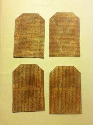 They are made of paper, with a jump ring at the top which I used to tie onto the package with ribbon. I think they came out really cute and I may make more from different TV shows or movies.